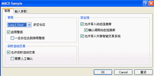 若进行修改附加图表上的智能交易系统设置,客户需要使用鼠标对着图形右上角的微笑图标双点击以便显示设置窗口。如图: